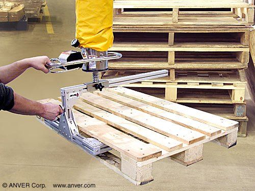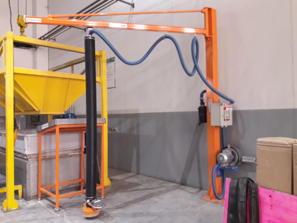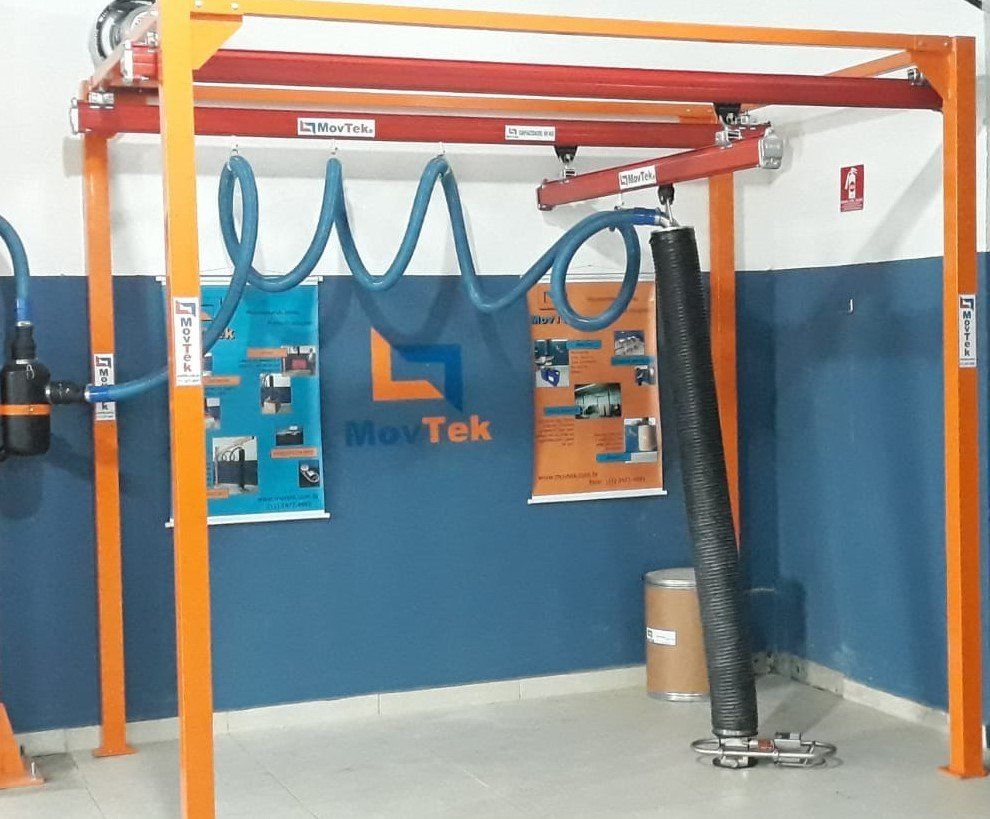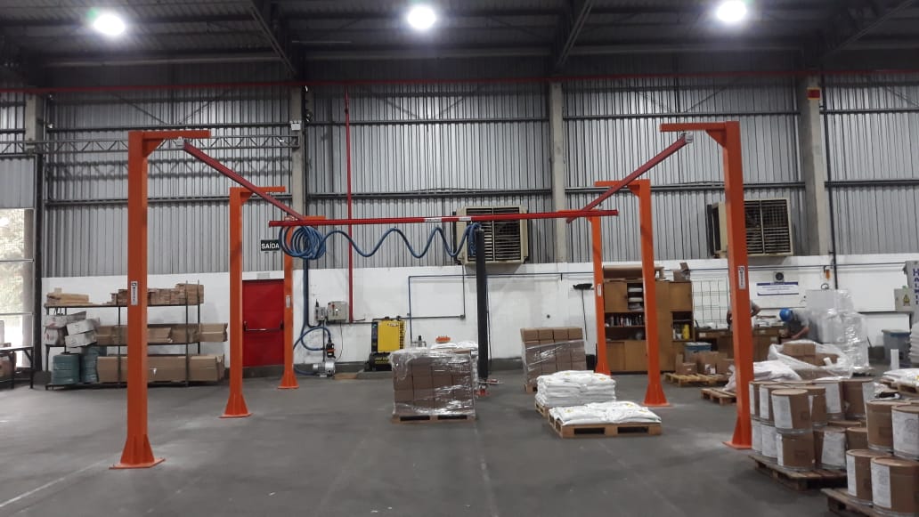 Terminal de sucção com duas ventosas retangulares para caixas, com estrutura de sustentação tipo grua giratória.